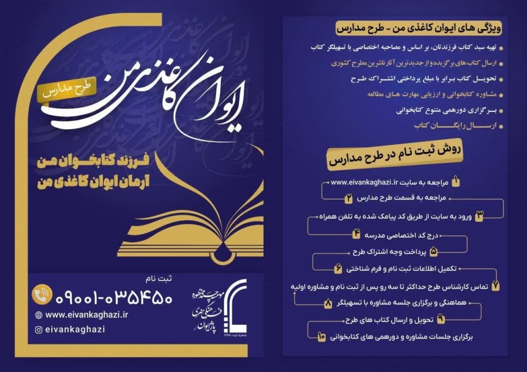 پویش کتابخوانی ایوان کاغذی من، طرح هدفمند کتابخوانی کودکان و نوجوانان 5 الی 17 سال است که با شعار ایوان زندگی خود را با کتاب می سازم تدوین گردیده است و هدف آن انتخاب هدفمند کتاب با شناخت سلیقه خوانش کتاب در کودکان و نوجوانان با هدایت و مشاوره تسهیلگران کتاب است.